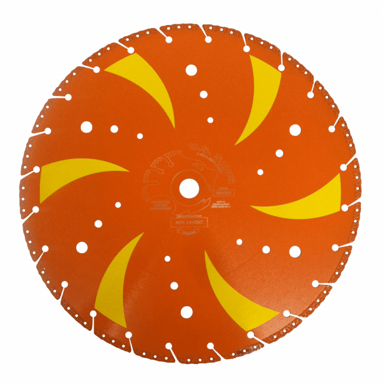 The 14″ Tiger Tooth II is constructed with a vacuum braised diamond grit for exceptionally fast, smooth cutting in nearly all materials. The blade is designed for use on 20mm arbor saws and built with a solid core, one-piece blade with no welds. The 14″ blade features holes in the core, allowing for faster cutting in wet pipe.