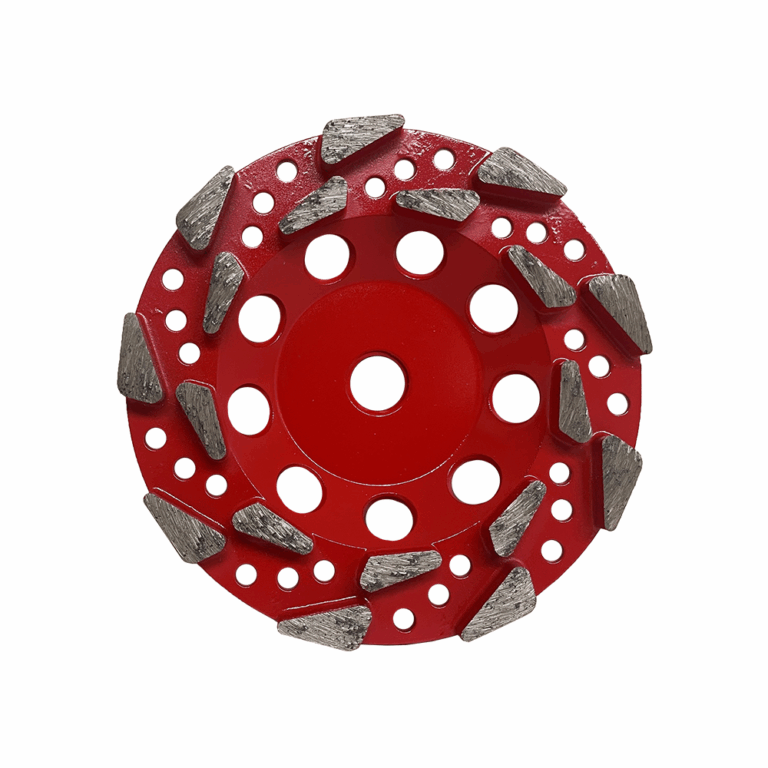 The 5″ tear drop cup wheel is excellent for concrete grinding, epoxy and paint removal, floor preparation and leveling.