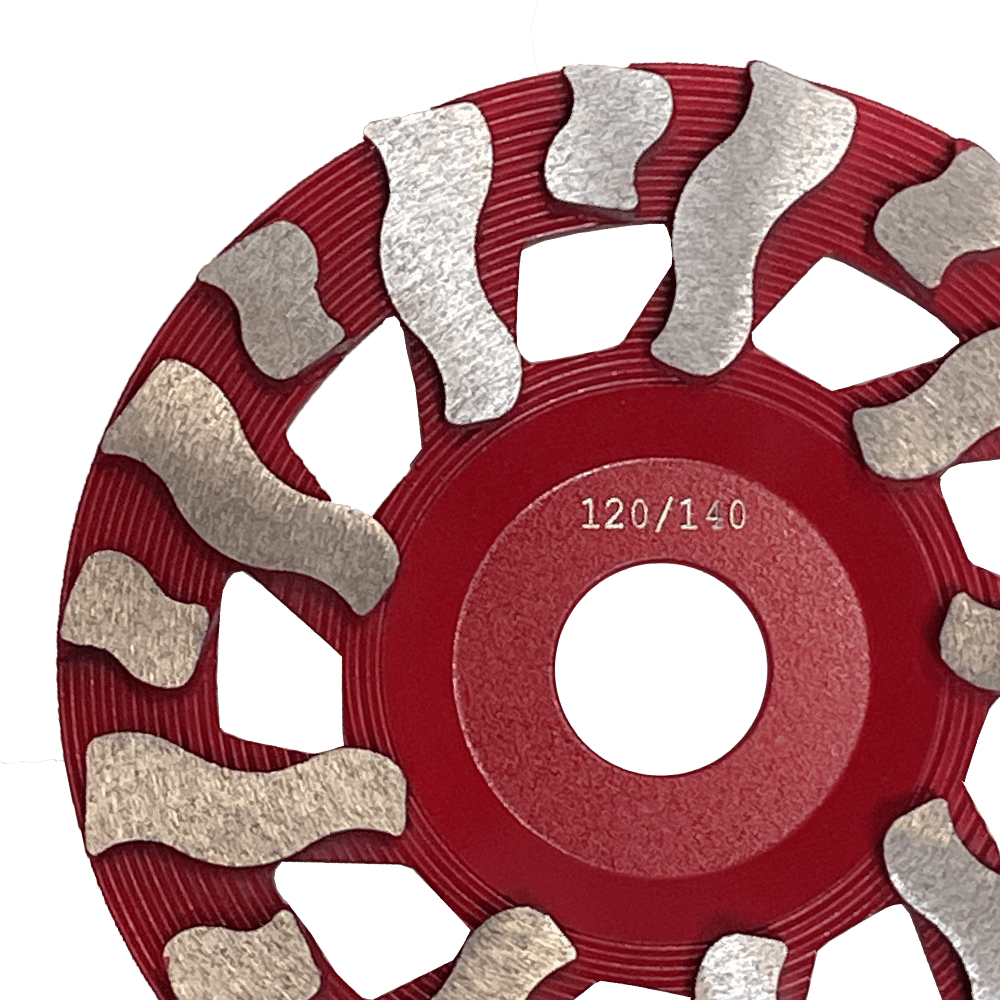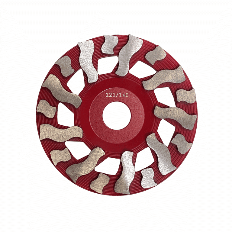 The 5″ fine grit bi-turbo cup is typically the last metal step before switching to resin pads when polishing concrete. The combination of longer and shorter segments eliminates gouging and leaves a uniform honed surface.