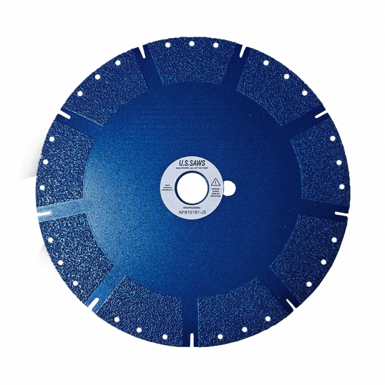 The blade is 10″ in diameter, .187 (3/16″) in width and has a 1″ arbor with Drive Pin Hole and will reach a maximum depth of 2-3/4″ when used with a U.S.SAWS JS-131 or JS-160.