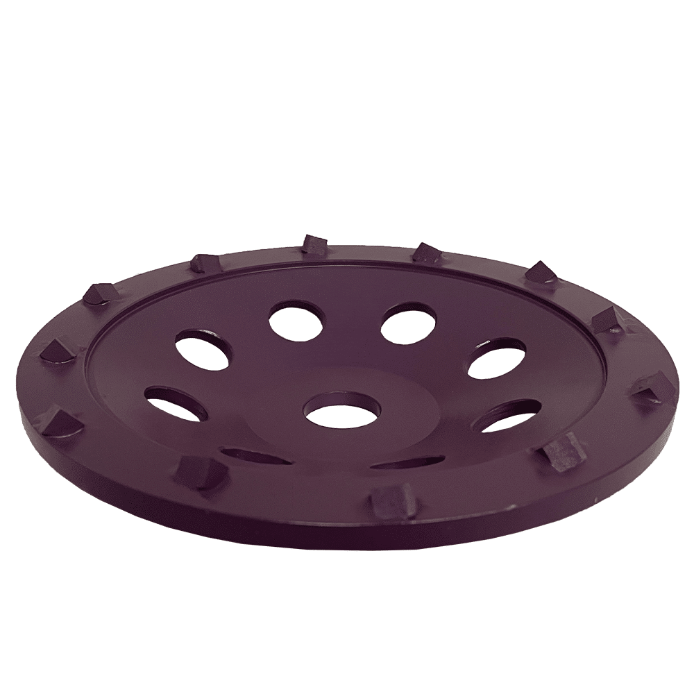 The 7″ PCD uses sharp segments that scrape away surface contaminants quickly. The best use for this wheel is epoxy coatings, multiple coats of paint, flake floors, and urethane deck coatings.