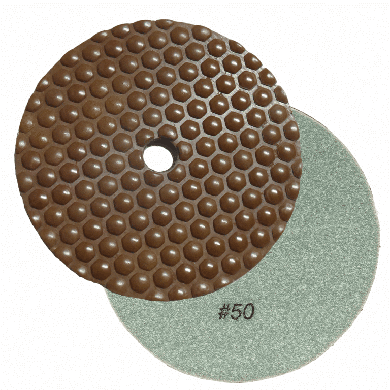 The 7″ #50 grit Honeycomb dry diamond polishing pad is aggressive and economic. The polishing pad is one of the best dry diamond polishing pads for granite and marble at this affordable price. The pads offer the top quality polish on both granite and marble.