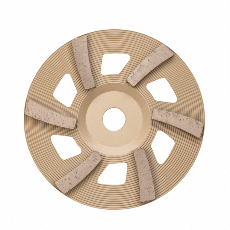 The 7″ tornado cup wheel is a soft bond grit with a long segment wheel that is very aggressive, leaves a deep profile (CSP 2.5), yet doesn’t leave gouge or ring marks in the concrete. Excellent for prepping for moisture mitigation coatings.