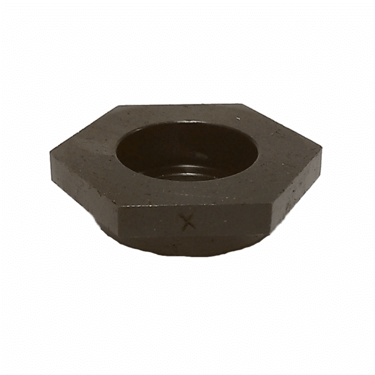 This is a cup wheel arbor nut designed for use with non-threaded cup wheels. It works in conjunction with the “W” cup wheel blade nut to securely hold the cup wheel in place.